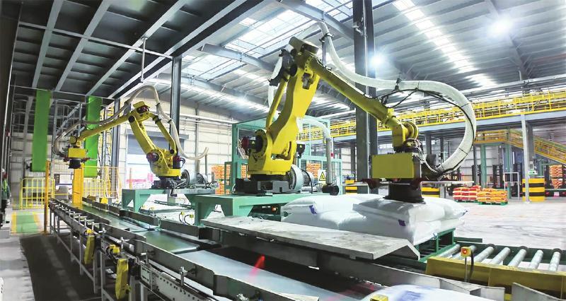 心連心集團(tuán)的機(jī)器人在行云流水地高效裝運(yùn)化肥