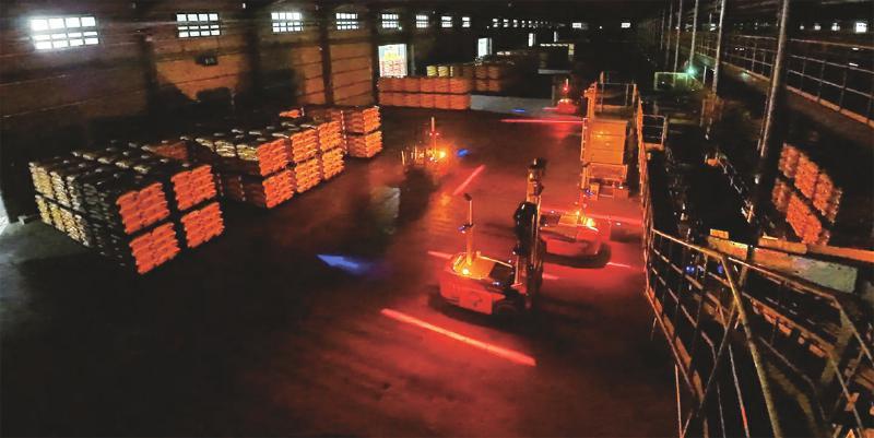 圖為AGV無人叉車在心連心集團(tuán)“黑燈倉庫”嫻熟作業(yè)場面